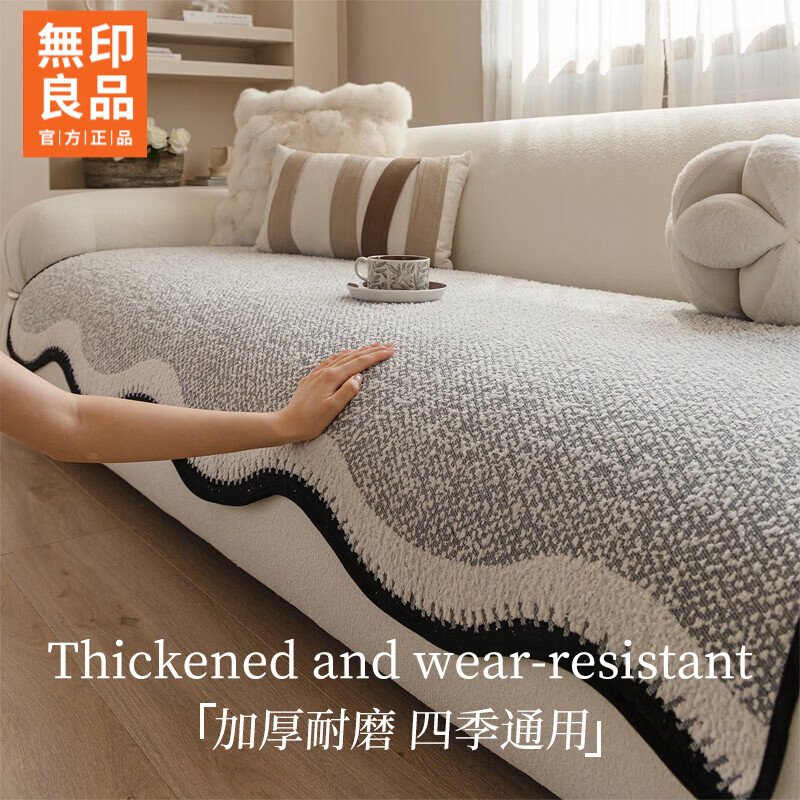 无印良品异形沙发垫四季通用加厚轻奢高级感皮沙发坐垫固定防滑沙发座垫 简茗-灰色 【舒适透气 防滑耐磨】 90*180cm (大两人位 )