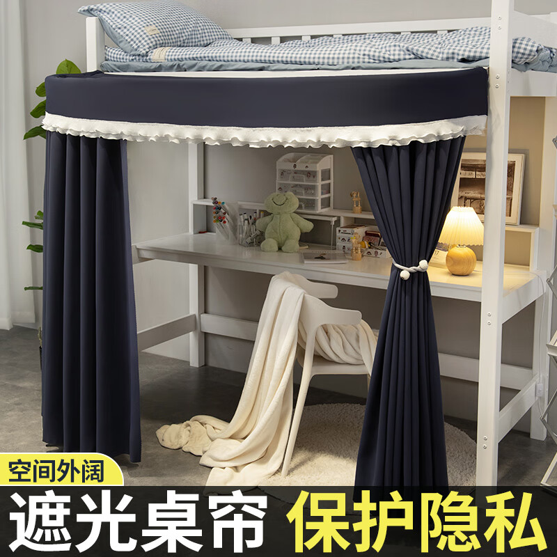 云瑾学生宿舍桌帘床帘下铺u型滑轨上床下桌强遮光帘寝室遮光布围帘 藏青色 长1.9m【外扩40杆+2帘】高120cm