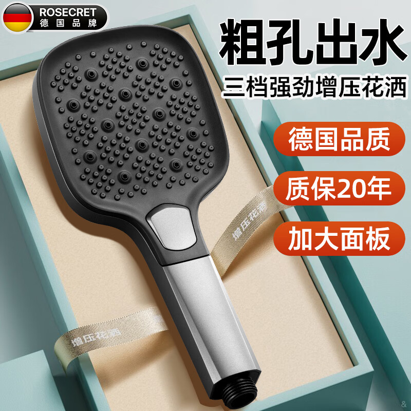 Rosecret【德国】增压淋浴花洒喷头家用多功能加压大面板沐浴手持莲蓬喷头 三档大面板【灰黑色】单花洒 瀑布出水丨一键换档丨防爆防摔