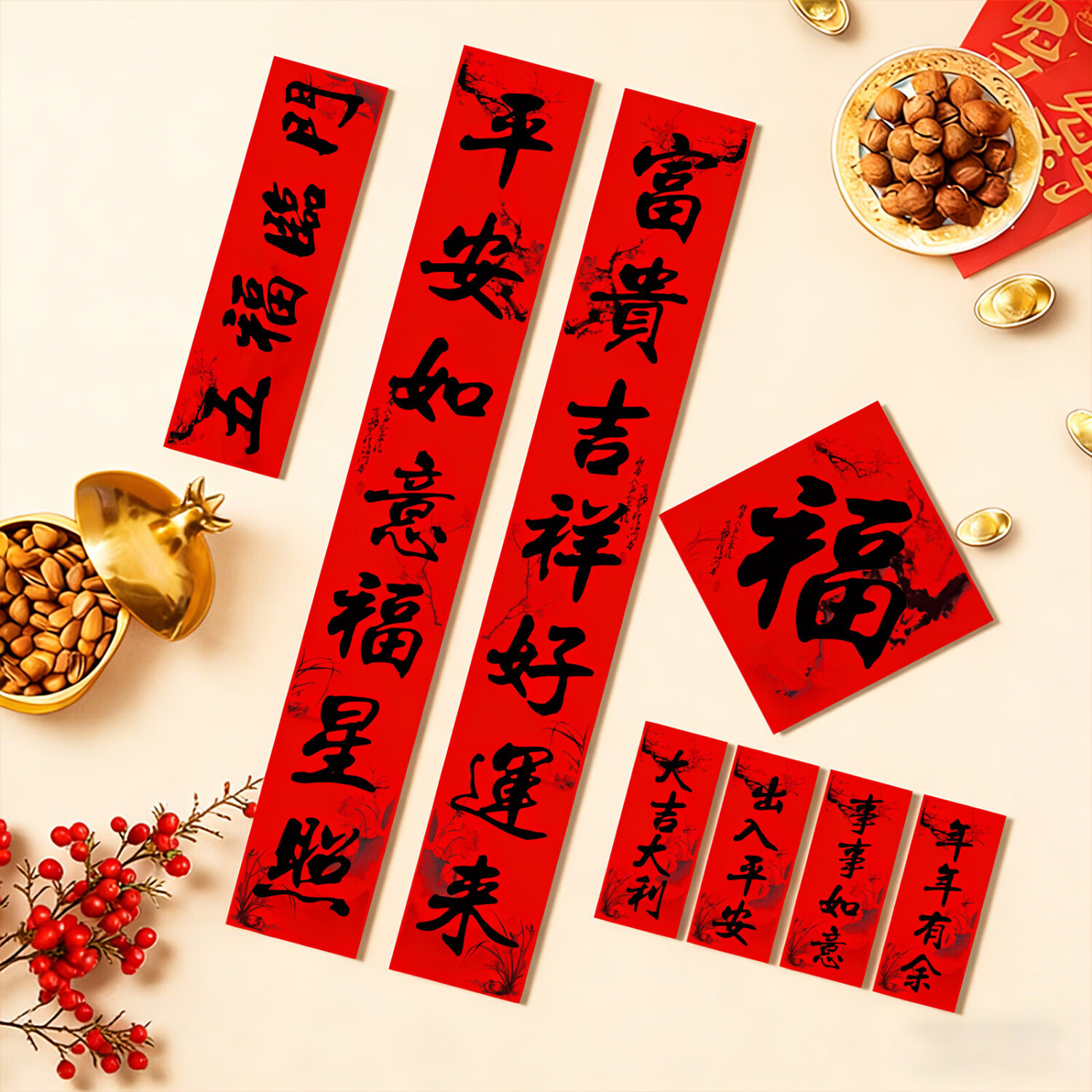 赛瓦凯对联2026马年家用自粘新年春节入户门装饰农村大门高档福字贴春联 【8件套】五福临门-黑字