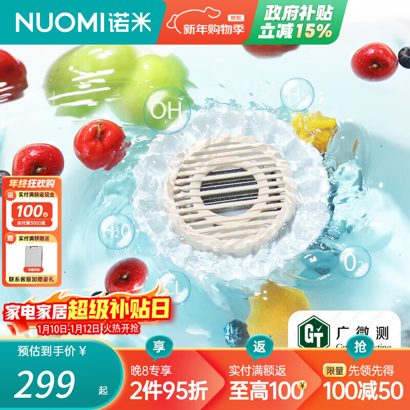 诺米(Nuomi)家用水果蔬菜食材清洗机无线充电漩涡式高效去农残一体果蔬净洗机 漩涡式食材净洗机*1
