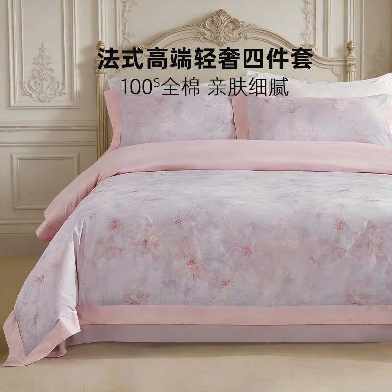 斯得福四件套100支长绒棉法式全棉床上用品高端轻奢高级感床单床笠 梦花坞 【100%进口美棉】 1.5/1.8 床单款 (被套200*230cm)