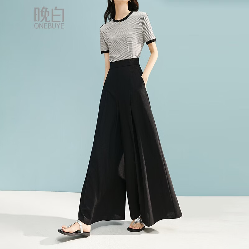 晚白【新品】2026年春款时尚高腰裤子遮胯显瘦垂顺休闲阔腿裤女 黑色 29