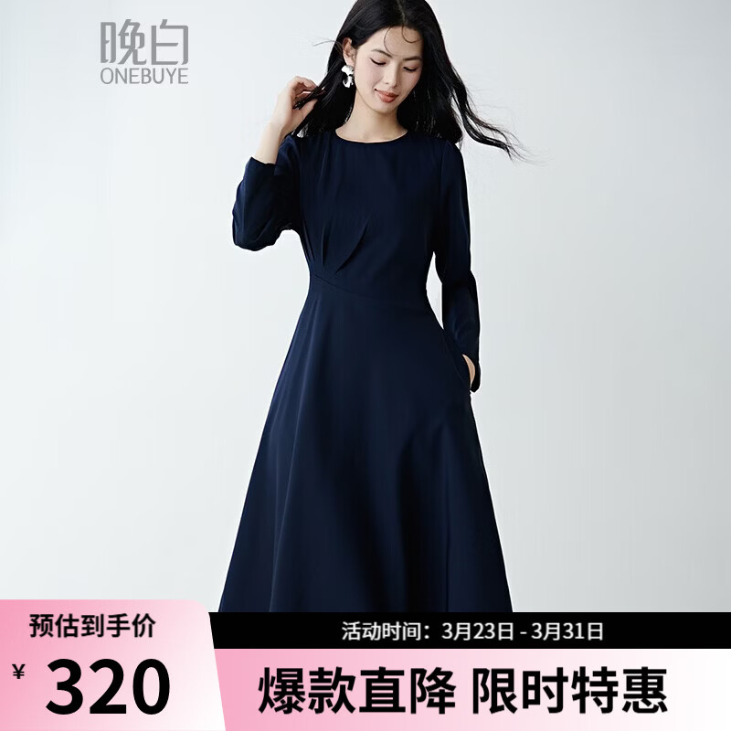 晚白【新品】2026年春款气质轻熟风裙子挺括利落显瘦干练通勤连衣裙 深蓝色 2XL
