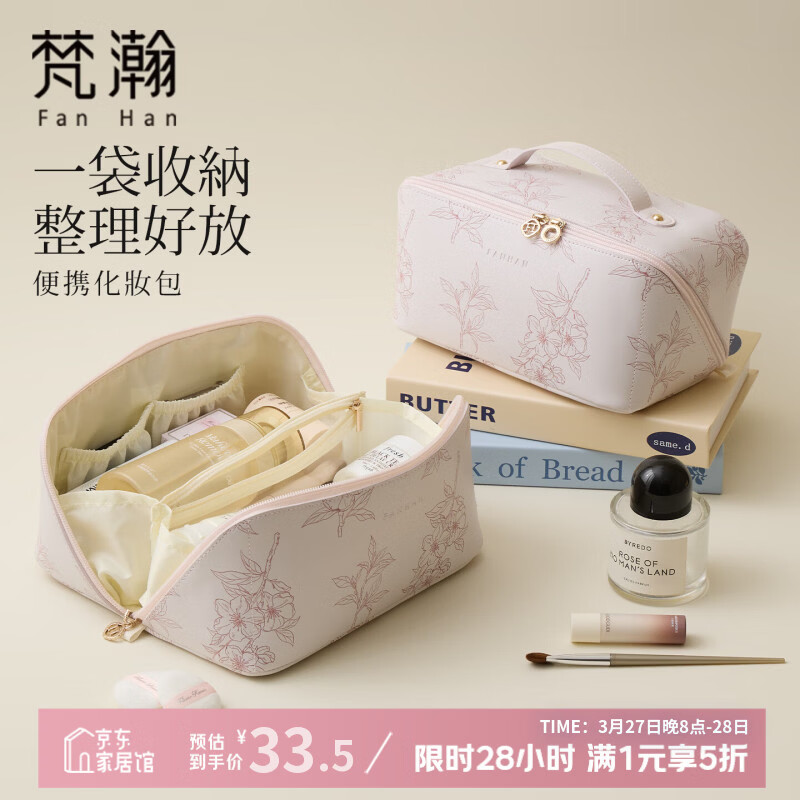 梵瀚轻奢高级化妆包便携外出旅行女2026新款高颜值大容量分区洗漱包 便携化妆包 沙粉色