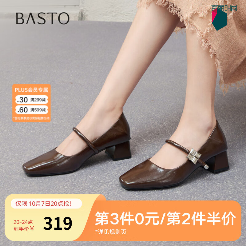 百思图2025秋新款法式红色玛丽珍鞋小皮鞋方头女浅口单鞋B5287CQ5 棕色 38
