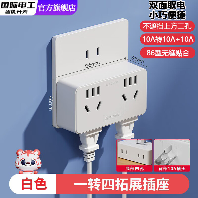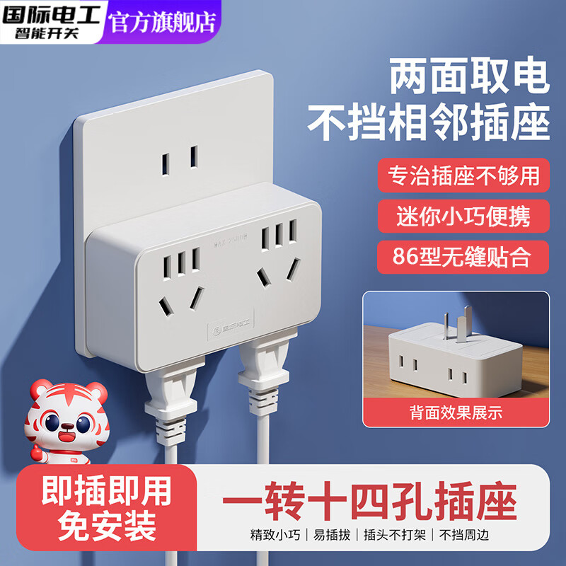 国际电工家用转换插头一转多功能插座10A转换器电源扩展排插线板多孔 一转十四孔插座【即插即用 白色】