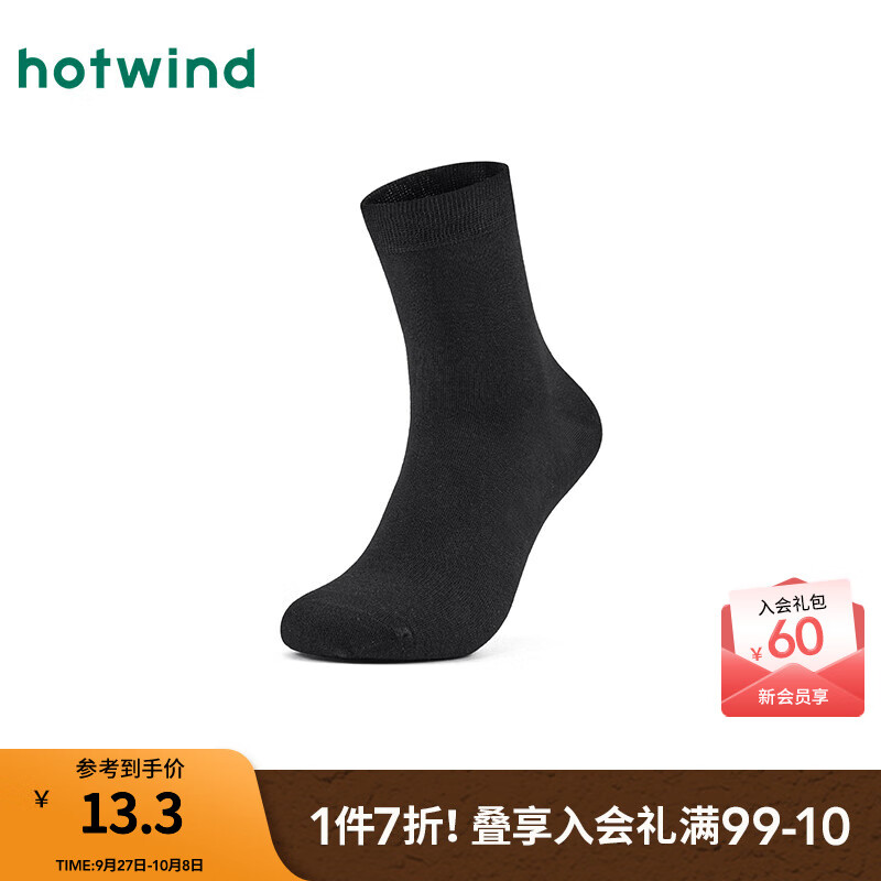 热风男士中筒袜2025年秋季新款高棉薄款中帮袜基础款纯色袜子 01黑色 均码