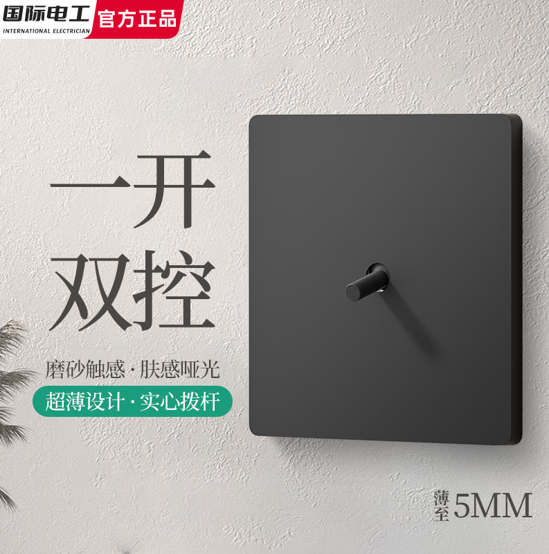 国际电工86型暗装插座面板墙壁黑色复古短拨杆磨砂哑光家用极简侘寂风开关 一开(单/双控通用)【黑杆】