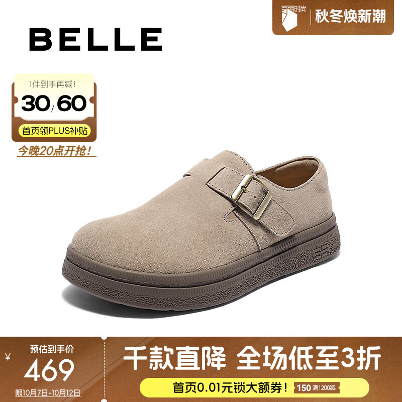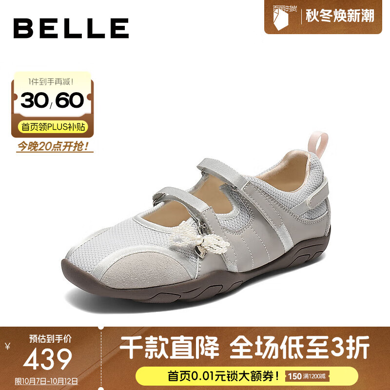 百丽(Belle)时尚芭蕾风玛丽珍鞋女2025秋新商场同款魔术贴休闲鞋E7A1DCQ5 灰色 36