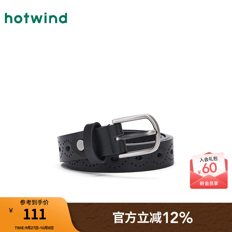 热风【商场同款】女士皮带25年秋新款时尚镂空针扣皮带可调节复古腰带 01黑色 105cm