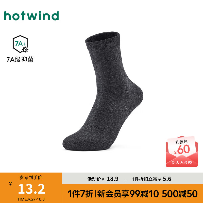 热风男士中筒袜2025年秋季新款抑菌消臭中帮袜纯色弹力舒适棉袜子 52深灰 1双 均码