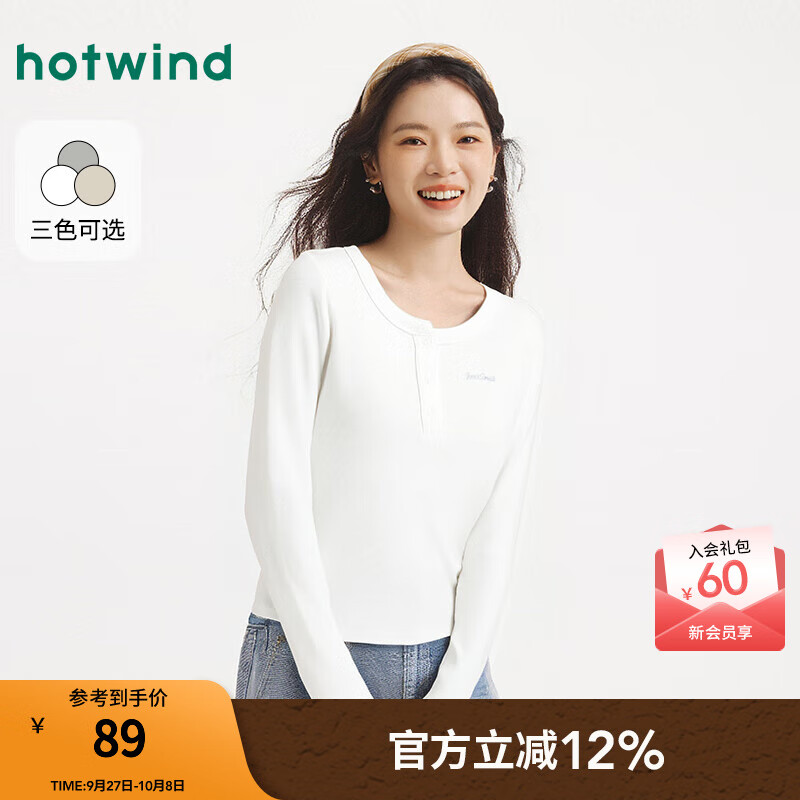 热风女士长袖T恤上衣2025年冬季新款亨利领长袖修身显瘦内搭打底 04白色 M