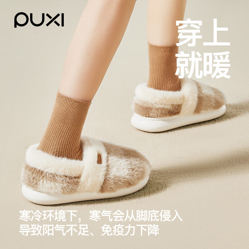 朴西棉拖鞋女秋冬季月子鞋包跟棉拖鞋居家情侣室内用防滑防臭情侣棉鞋 奶咖色 36 【36-37】