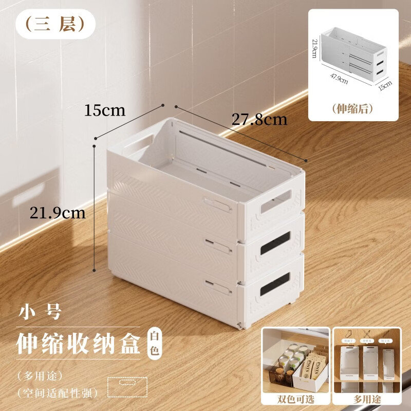 纳份爱可伸缩橱柜收纳盒抽屉式厨房收纳盒可折叠直角桌面杂物整理储物盒 【白色小号-三只装】伸缩扩容 【可折叠/多用途收纳】