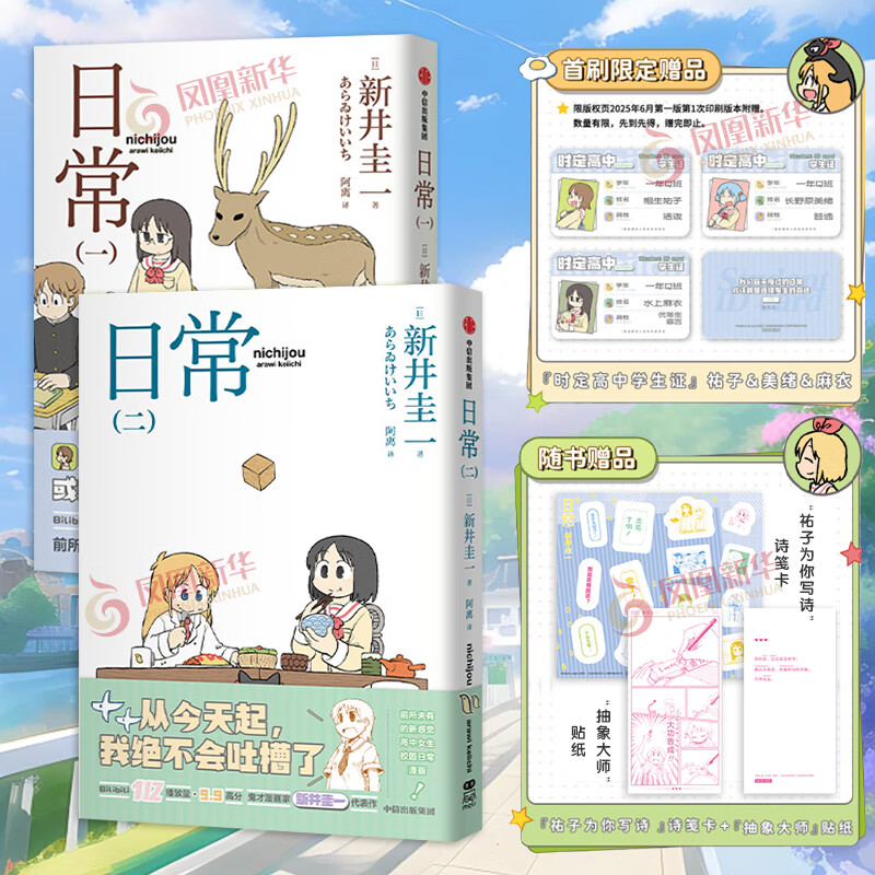 【首刷赠时定高中学生证*3】日常.一、二 新井圭一 著 随书赠抽象大师贴纸+绵纸诗笺 废萌系日常漫画之集大成者 女子高中生的爆笑日常 日本漫画 正版书籍