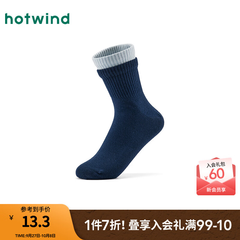 热风【商场同款】女士袜子2025年秋新款罗口中帮袜亲肤棉袜休闲中筒袜 29藏青兰 1双 均码