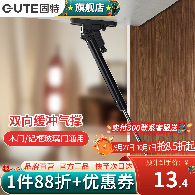 固特(GUTE)支撑杆液压气撑杆橱柜顶柜上翻门气动弹簧伸缩杆双缓冲阻尼 双缓冲【100N黑色】 上翻门支撑杆