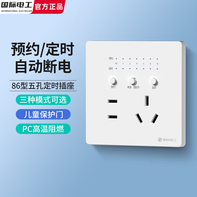 国际电工86型五孔定时插座电动车鱼缸充满自动断电预约定时开关时间定时器 白色-86型五孔定时插座【预约/定时自动断电】