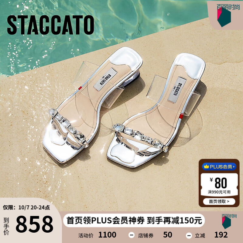 思加图2025夏季新款无糖苏打仙女凉拖鞋粗跟外穿女凉鞋EI409BT5 清透银 37