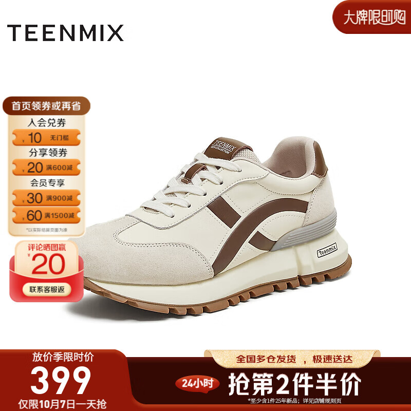 天美意阿甘鞋商场同款潮流拼色女鞋时尚女休闲鞋2025秋新款 杏棕 36