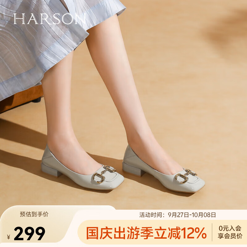 哈森(Harson)法式方头粗跟豆豆鞋2025秋季单鞋女百搭鎏金马衔扣通勤鞋HL259001 灰色 40