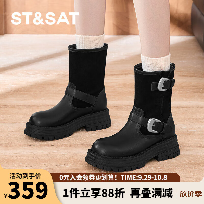 星期六时尚摩登潮酷女靴2025秋季新款百搭舒适时装靴MTSSD3116C48 黑色 38