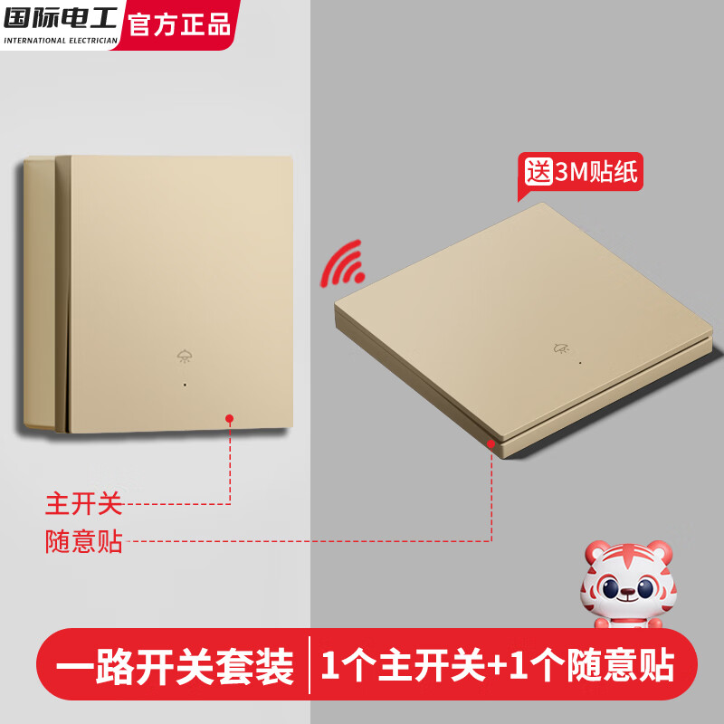 国际电工明装86型随意贴无线遥控开关面板照明220v墙壁子母免布线双联双控 明装一开【1主开关+1随意贴】金