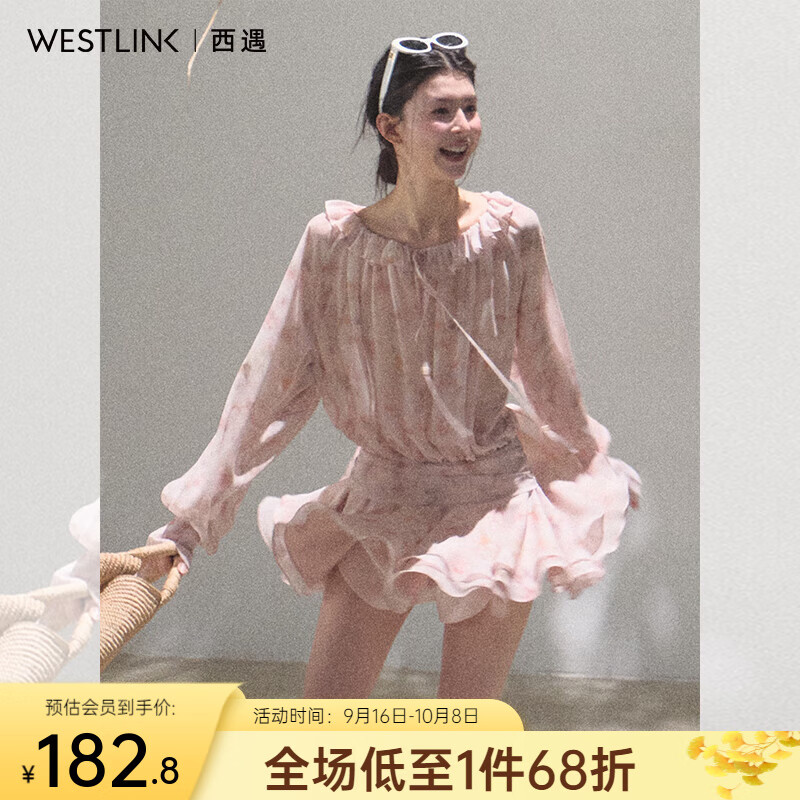 西遇法式收腰连衣裙女2025年秋季新款粉色娃娃领荷叶边短款裙子 粉色 L (165)
