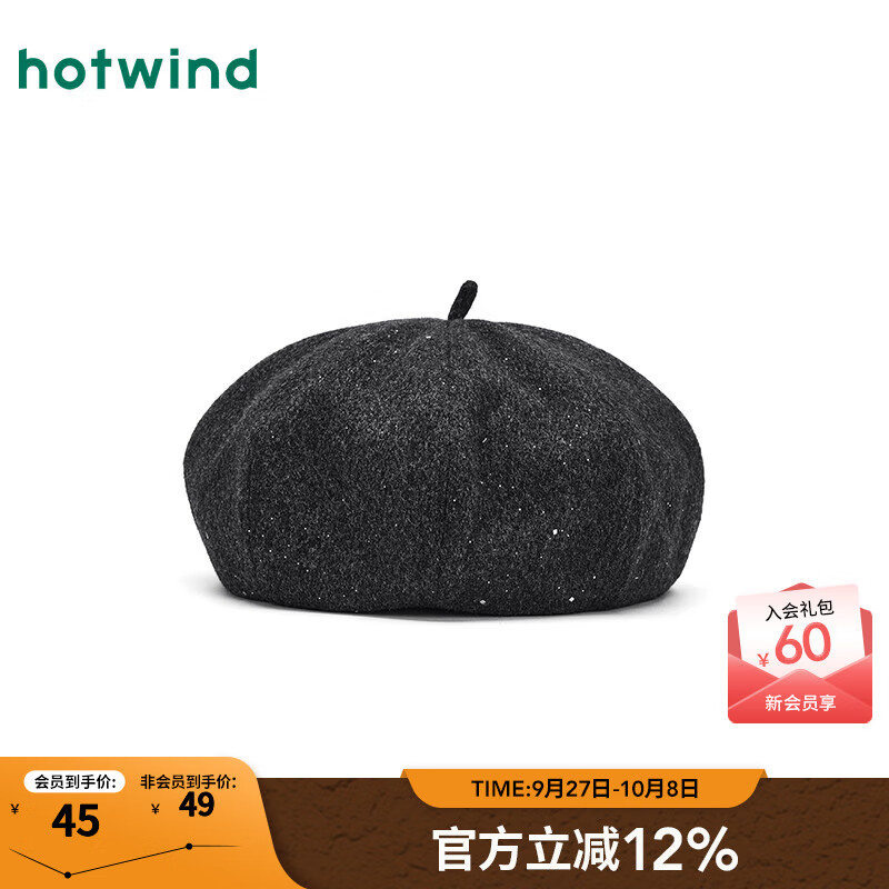 热风(Hotwind)女士帽子文艺贝雷帽2025年秋季新款亮片显脸小贝雷帽画家帽 09灰色 均码