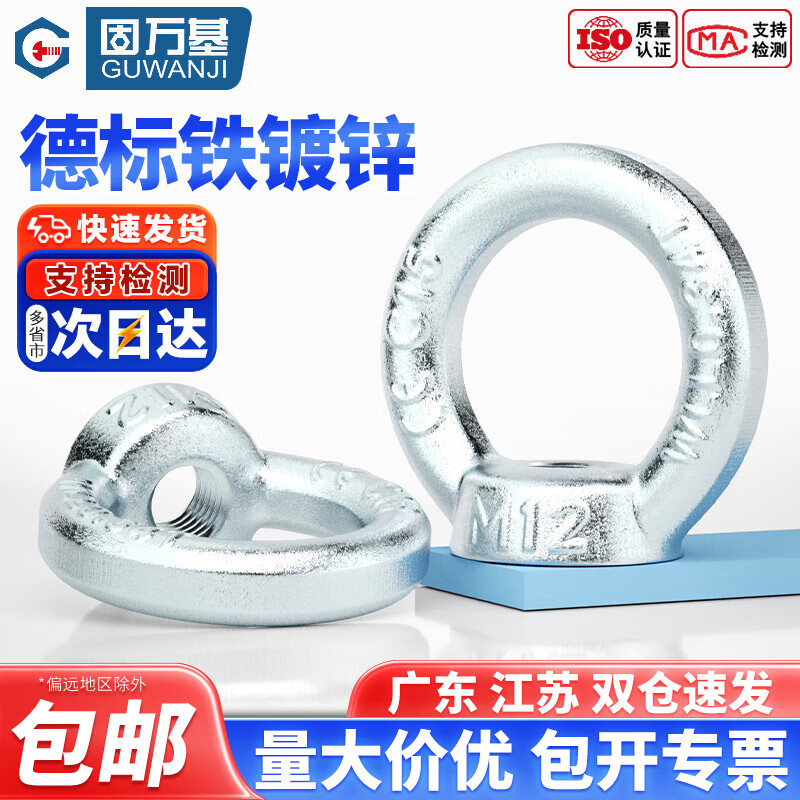 固万基铁镀锌吊环螺母DIN582吊母环形螺帽吊耳圆环吊环德标碳钢吊环螺帽 镀锌德标 M10(2个)