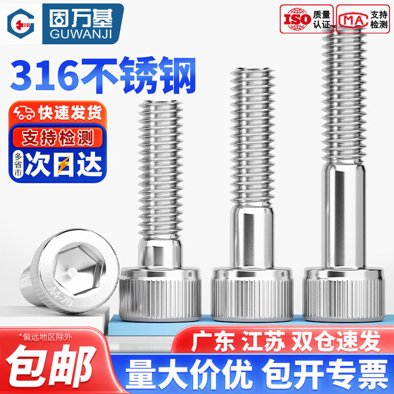 固万基316不锈钢半牙内六角螺丝圆柱头螺栓加长杯头螺钉M4M5M6M8M10M12 M6x90[2只]