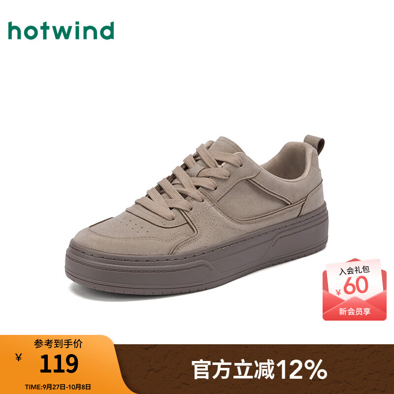 热风男鞋2025年秋季新款厚底运动休闲鞋百搭板鞋男款软底鞋子男 08杏色 44