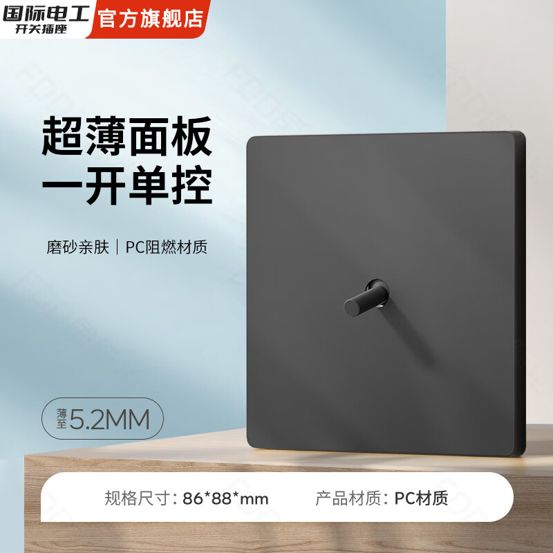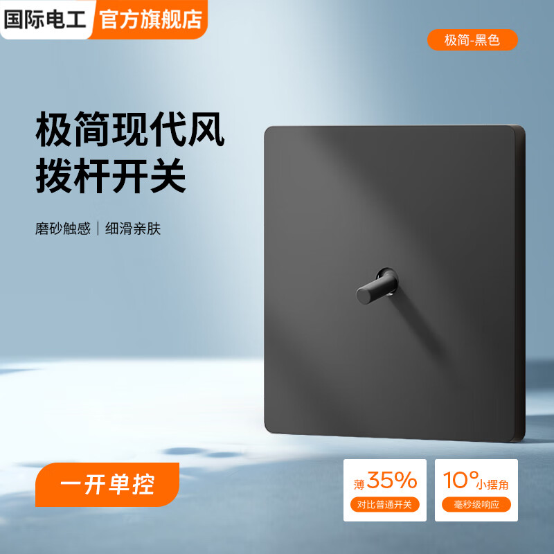 国际电工86型超薄拨杆式开关插座面板家用墙壁暗装五孔双控USB充电typc-C 直拨杆【一开单控】