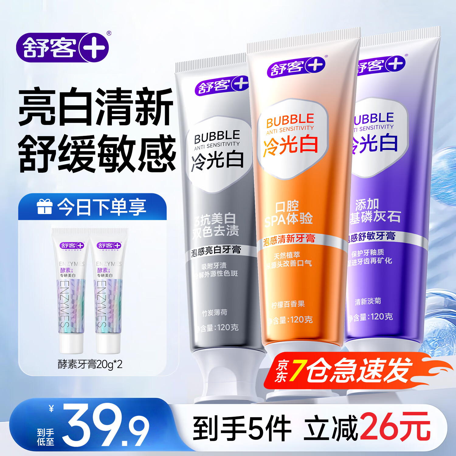 舒客美白牙膏去口气去黄去牙渍去烟渍清新口气含氟防蛀养龈舒敏牙膏 【热卖3支装】美白+清新+舒敏360g