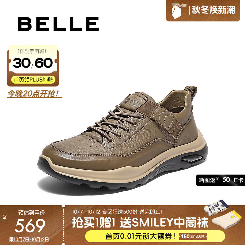 百丽(Belle)男鞋套脚休闲鞋2025冬季新款商场同款厚底增高工装鞋加绒8WR01DM5 卡其色-单里 41 (255mm)