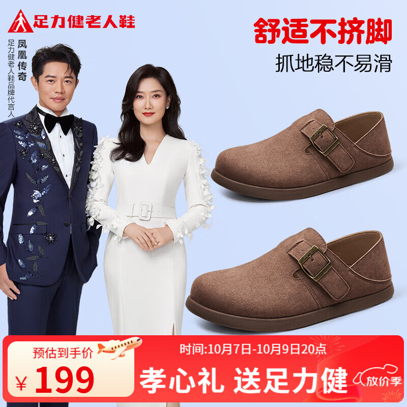 足力健中老年复古包头拖鞋时尚百搭一脚蹬女单鞋勃肯鞋送礼长辈 咖色-女款 36