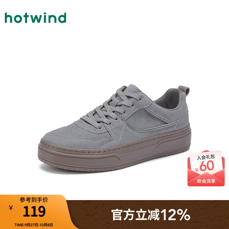 热风男鞋2025年秋季新款厚底运动休闲鞋百搭板鞋男款软底鞋子男 09灰色 44
