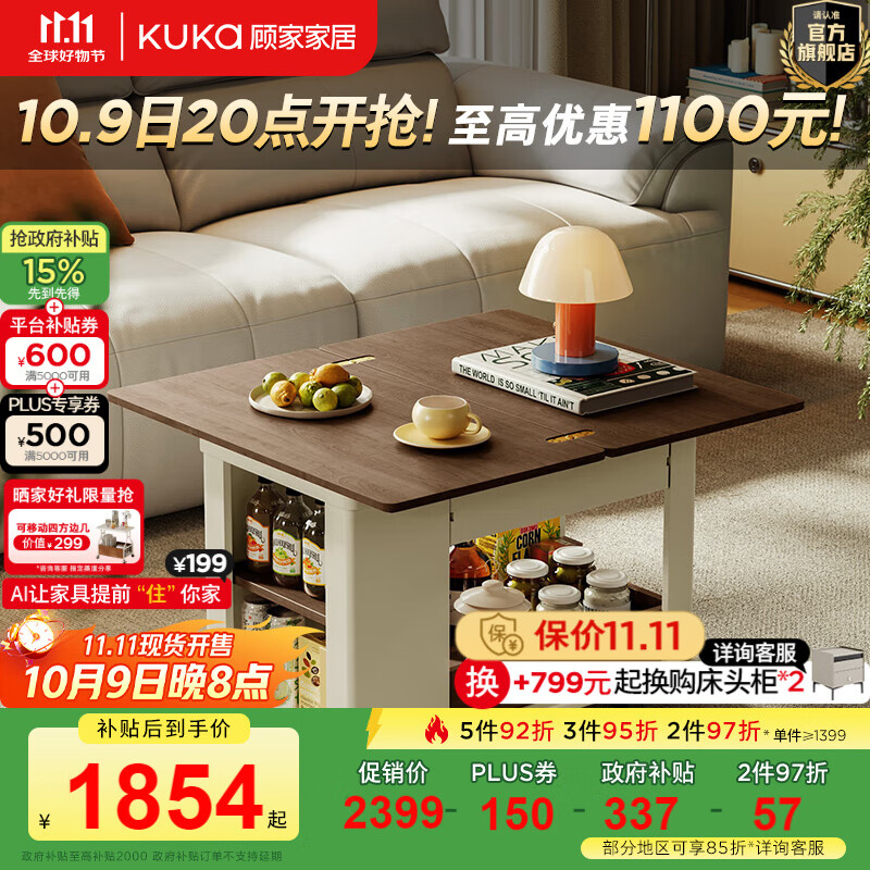 顾家家居现代复古多功能移动边几折叠旋转台面多样储物区灵活万向轮DS7223 【胡桃木色】多功能移动边几