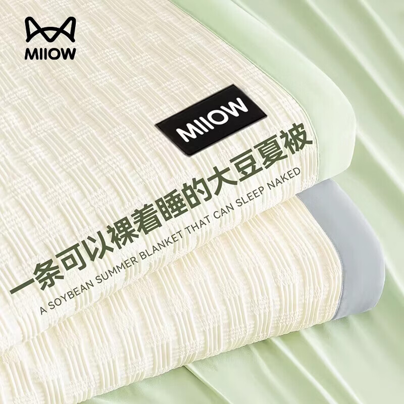 猫人(MiiOW)夏季大豆纤维被子被芯空调被夏凉被四件套夏天凉感被芯 牛油果绿 单人夏被:150x200cm