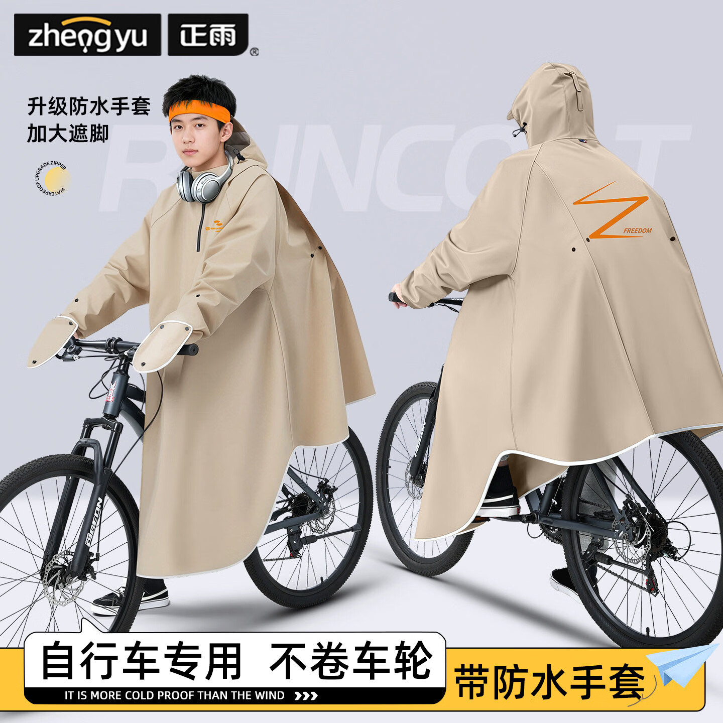 正雨雨衣自行车学生上学专用一体全身防暴雨山地车电动车骑行儿童雨披 砂砾卡【基础款】+拉链领口+大帽檐 4XL1件【身高165-190】当天发货