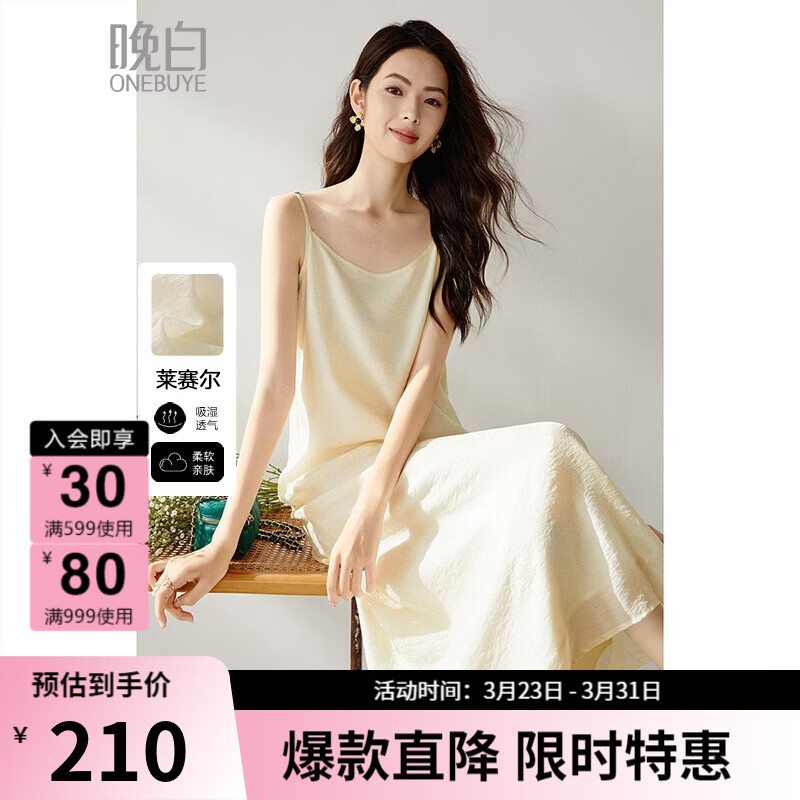 晚白【新品】2026年春款时尚吊带裙子亲肤莱赛尔宽松休闲连衣裙 米白色 S