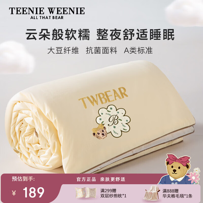 Teenie Weenie小熊A类抑菌大豆纤维被夏被云朵被空调被 黄色 【泡芙软糯+散热透气】 加大夏被:220cm*240cm