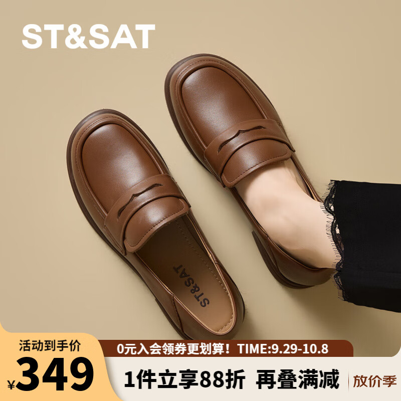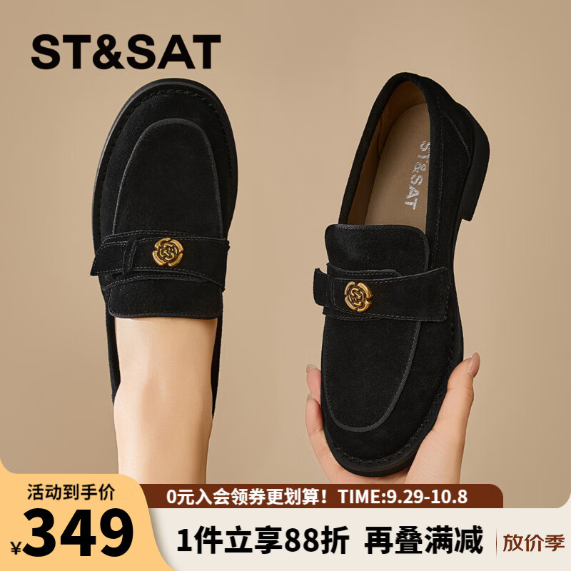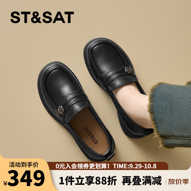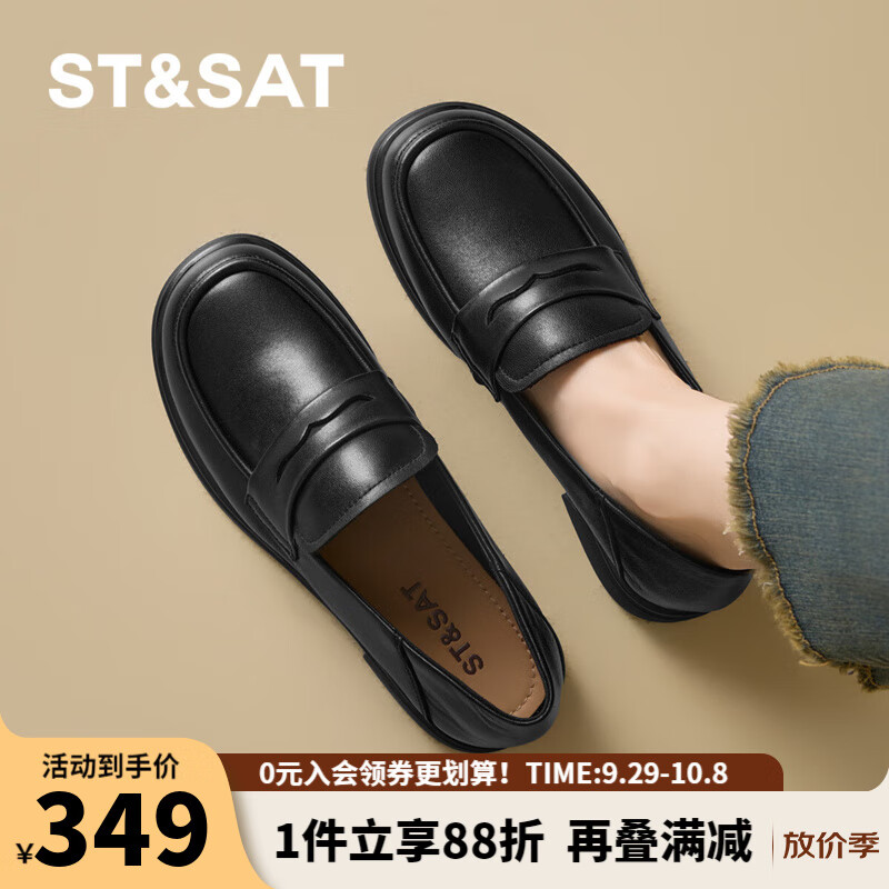St&Sat时尚英伦风乐福鞋2025秋季新款厚底百搭小皮鞋MTSSD3112CBA 黑色 35