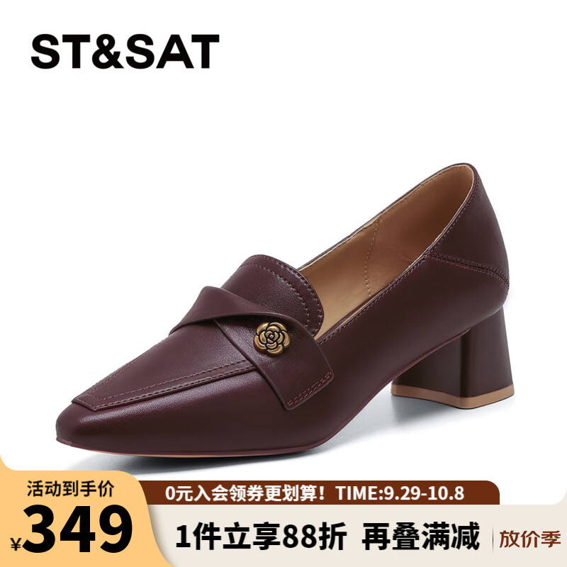 星期六时尚摩登女鞋2025秋季新款百搭舒适通勤女单鞋MTSSD3111C8N 红棕色 37