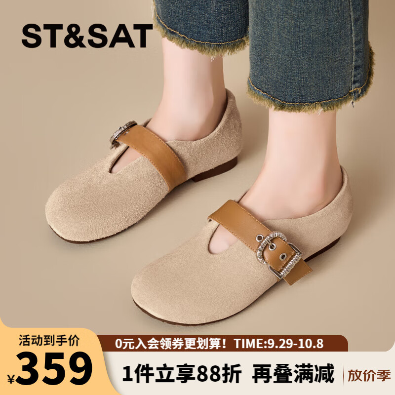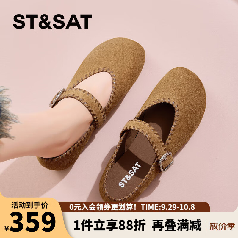 星期六时尚圆头一字带玛丽珍鞋2025夏季新款百搭舒适女鞋MTSSD2111WL4 驼色 35