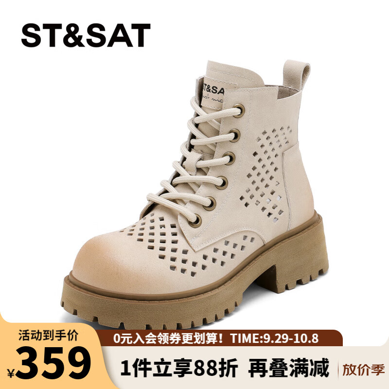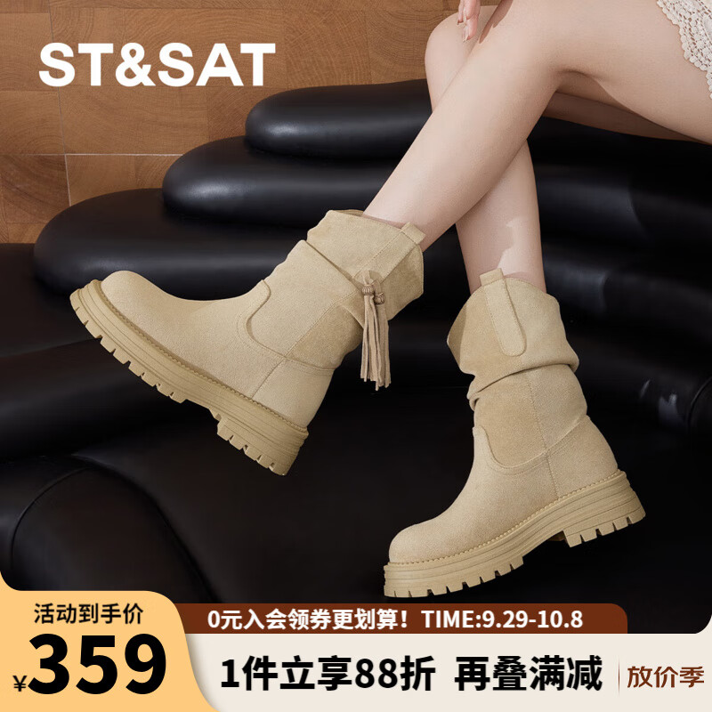 星期六圆头潮流时尚马丁靴2025冬季英伦风马丁靴MTSSD4116C44 杏色 35