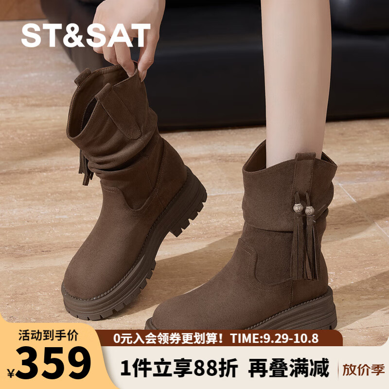 星期六时尚百搭烟筒靴2025冬季新款舒适时装靴MTSSD4116C9U 棕色 39