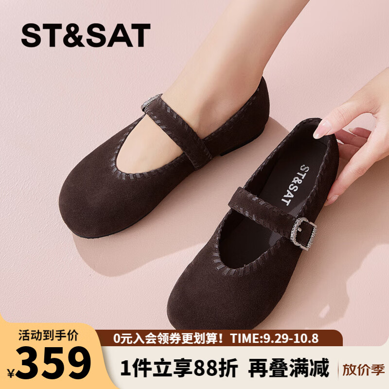 星期六时尚圆头一字带玛丽珍鞋2025夏季新款百搭舒适女鞋MTSSD2111WL4 深咖色 35