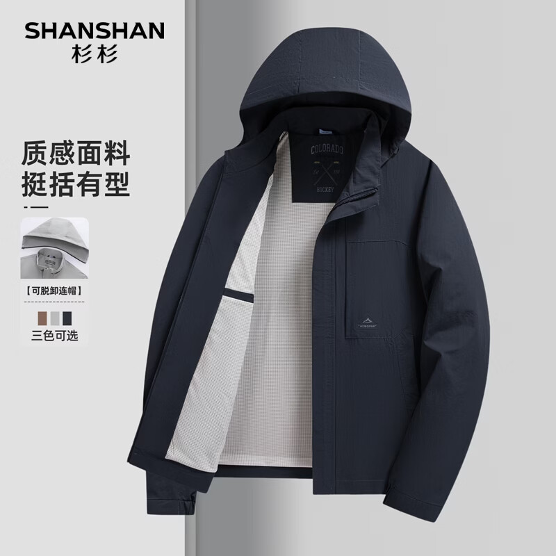SHANSHAN杉杉男士夹克【可脱卸帽】商务休闲百搭上衣春季防风日常时尚外套 藏青色 3XL /190